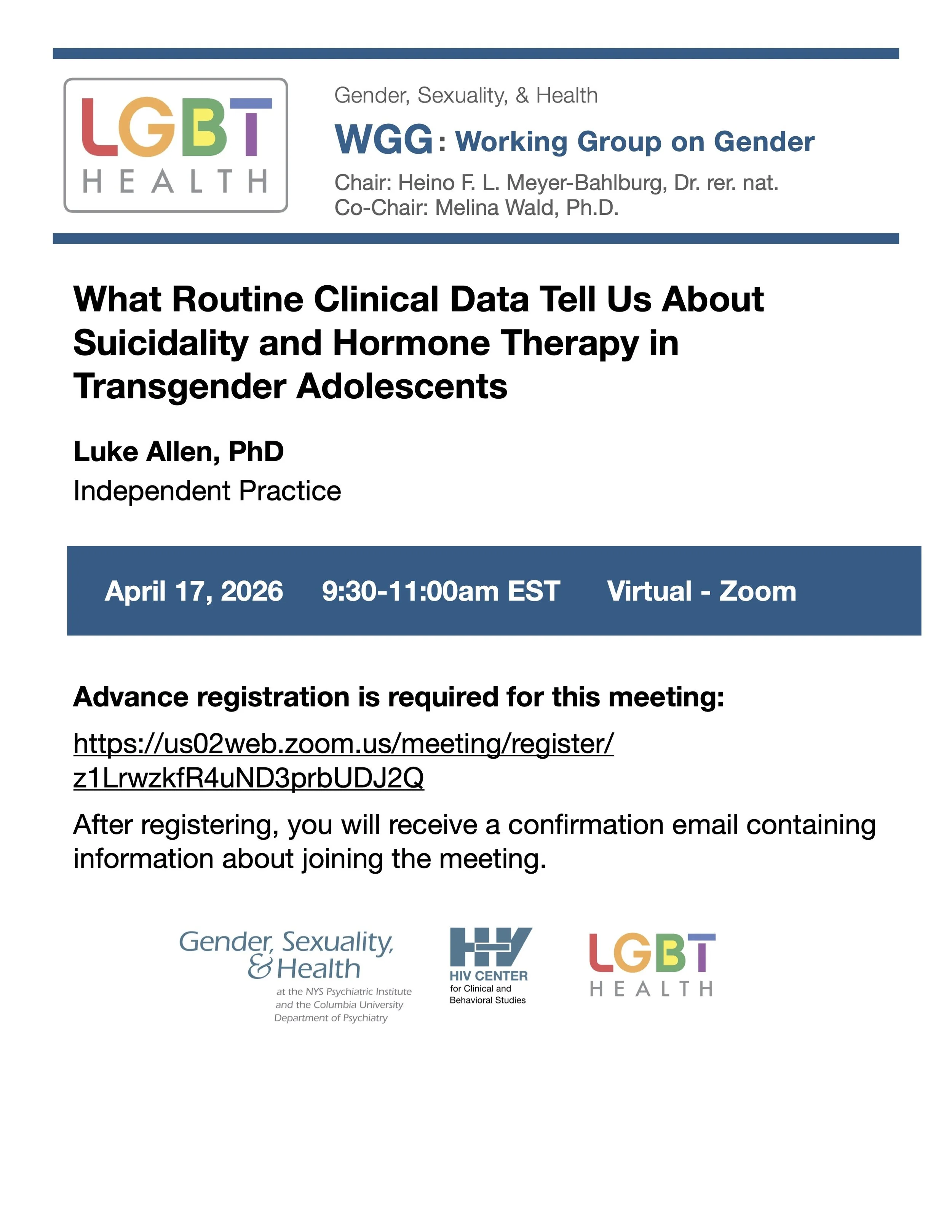 Gender, Sexuality, and Health Area at the New York State Psychiatric Institute and Columbia Psychiatry